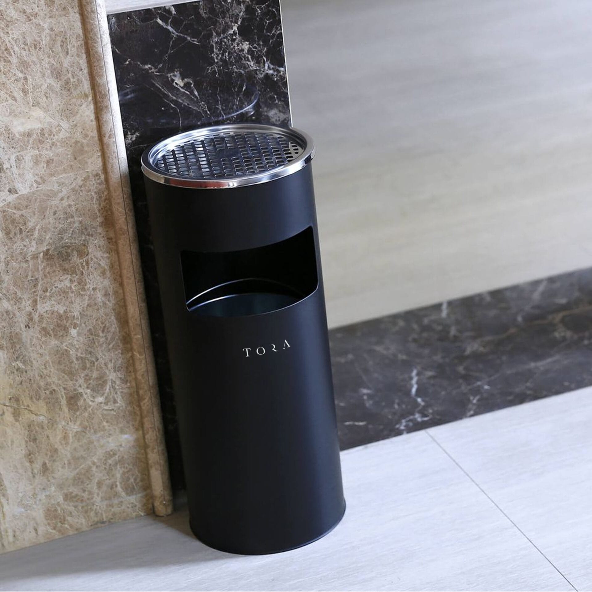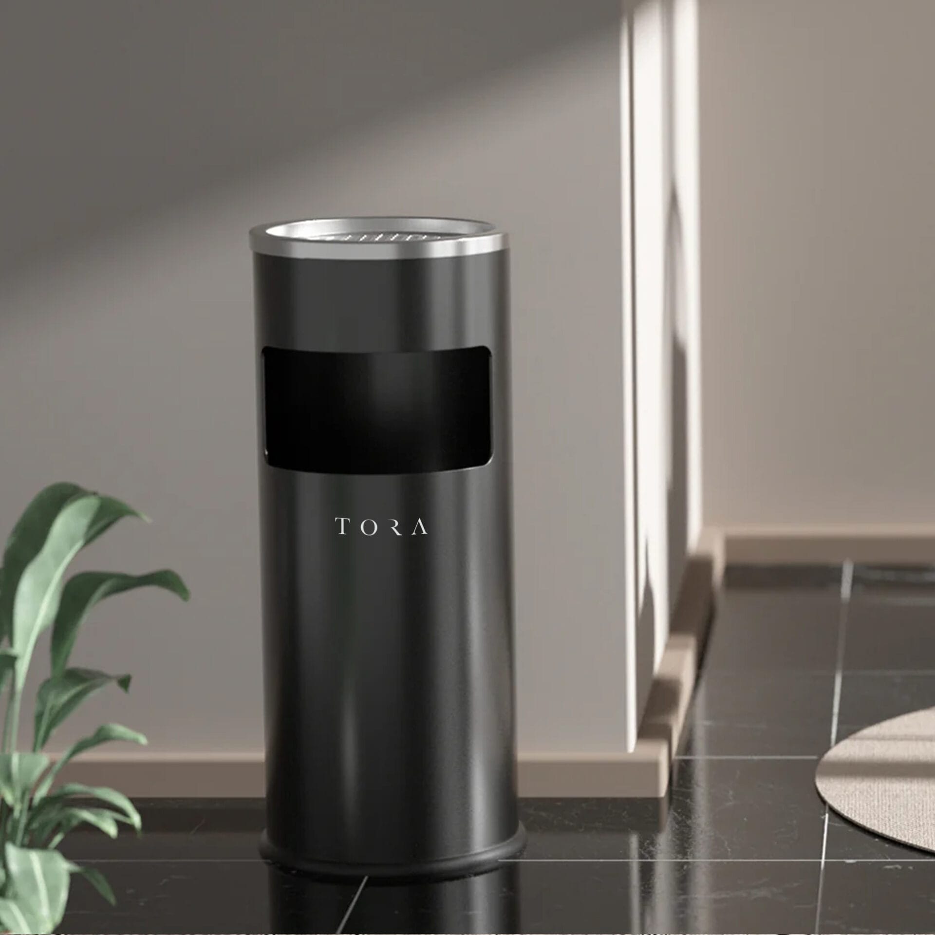 Połączenie matowej czerni i stali nierdzewnej sprawia, że koszo-popielnica prezentuje się elegancko i nowocześnie, pasując do różnych przestrzeni. Dzięki swojej funkcjonalności łączy estetykę z wygodą, zapewniając porządek i czystość w każdej strefie.