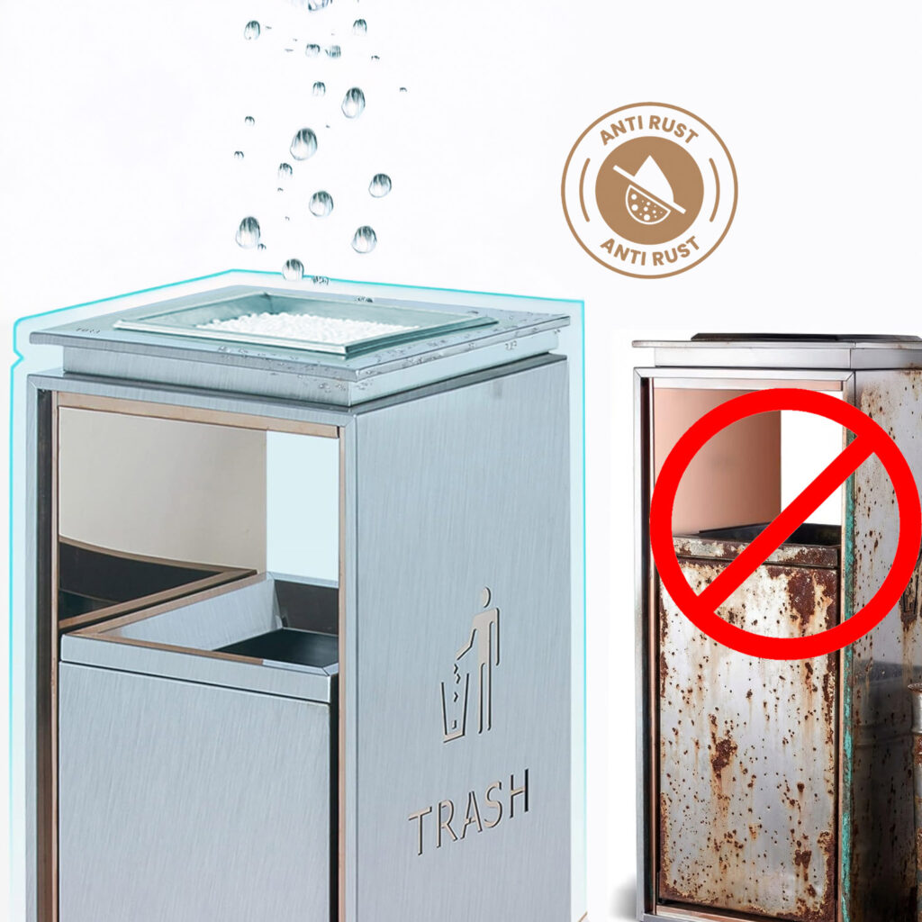 Kosz na śmieci z popielnicą zewnętrzny ze stali nierdzewnej PREMIUM to nowoczesne rozwiązanie dla hoteli, biur i przestrzeni publicznych. Produkt łączy elegancki design z wysoką odpornością na warunki atmosferyczne, dzięki czemu doskonale sprawdza się w codziennym użytkowaniu.