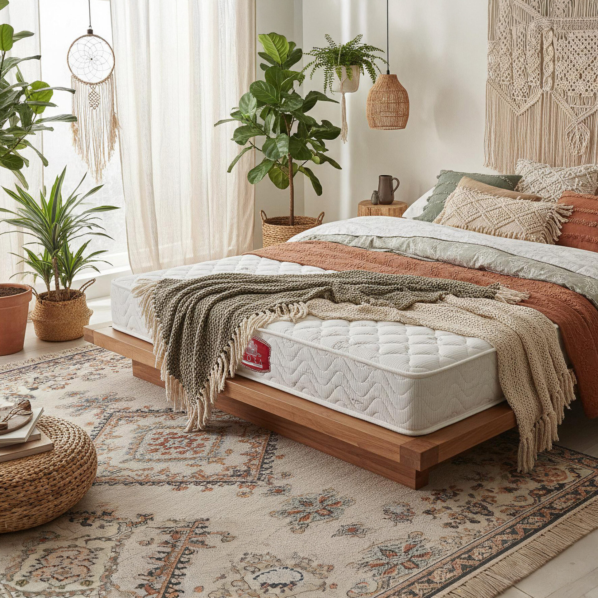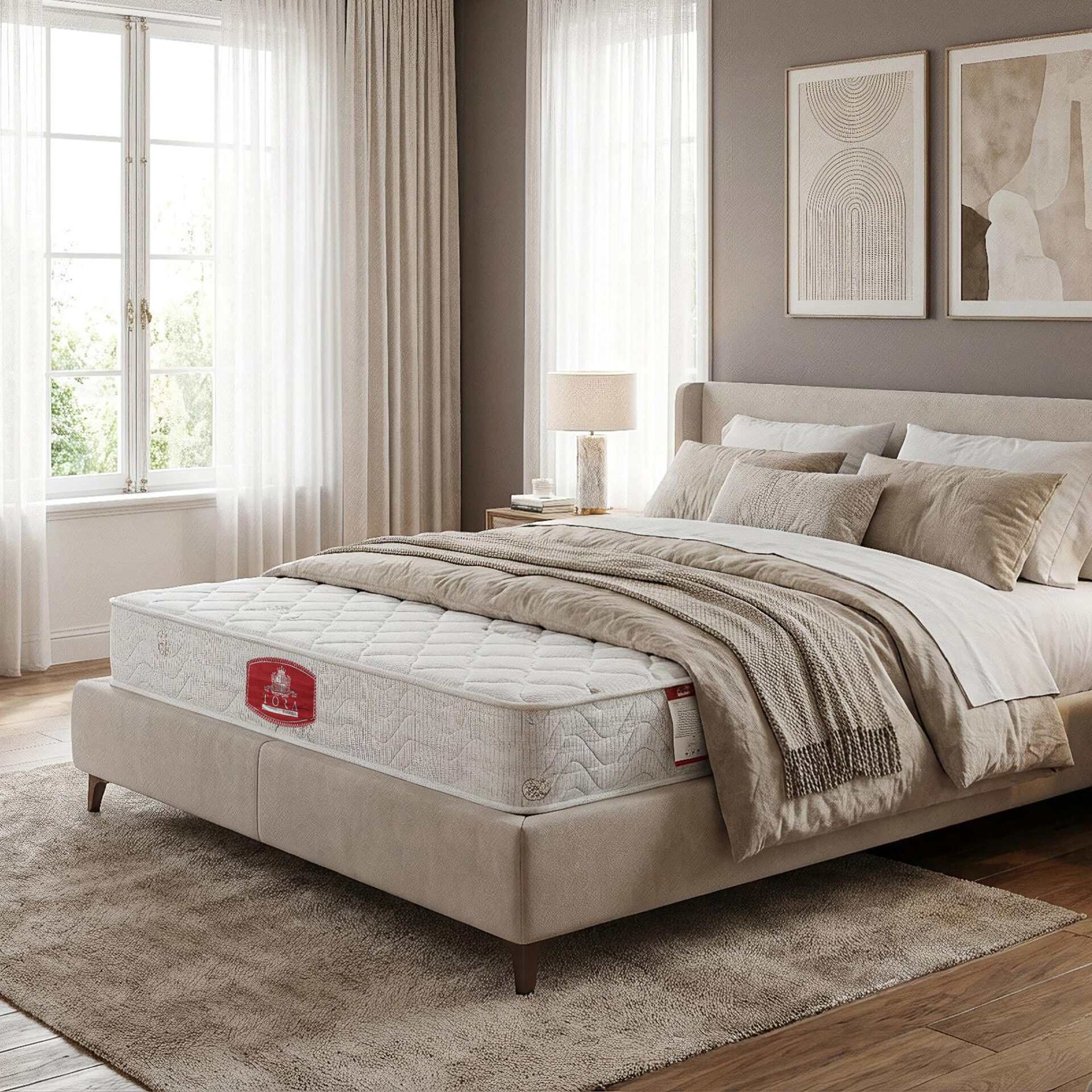 Materac Classic (H4) wyróżnia się eleganckim i solidnym designem – biała, pikowana góra z delikatnym wzorem w romby kontrastuje z bordowo-czarną lamówką wokół boków. Centralne logo TORA dodaje całości klasy i podkreśla dbałość o detale. To stylowy model o wyważonym charakterze, idealnie wpisujący się w estetykę nowoczesnych, hotelowych wnętrz.
