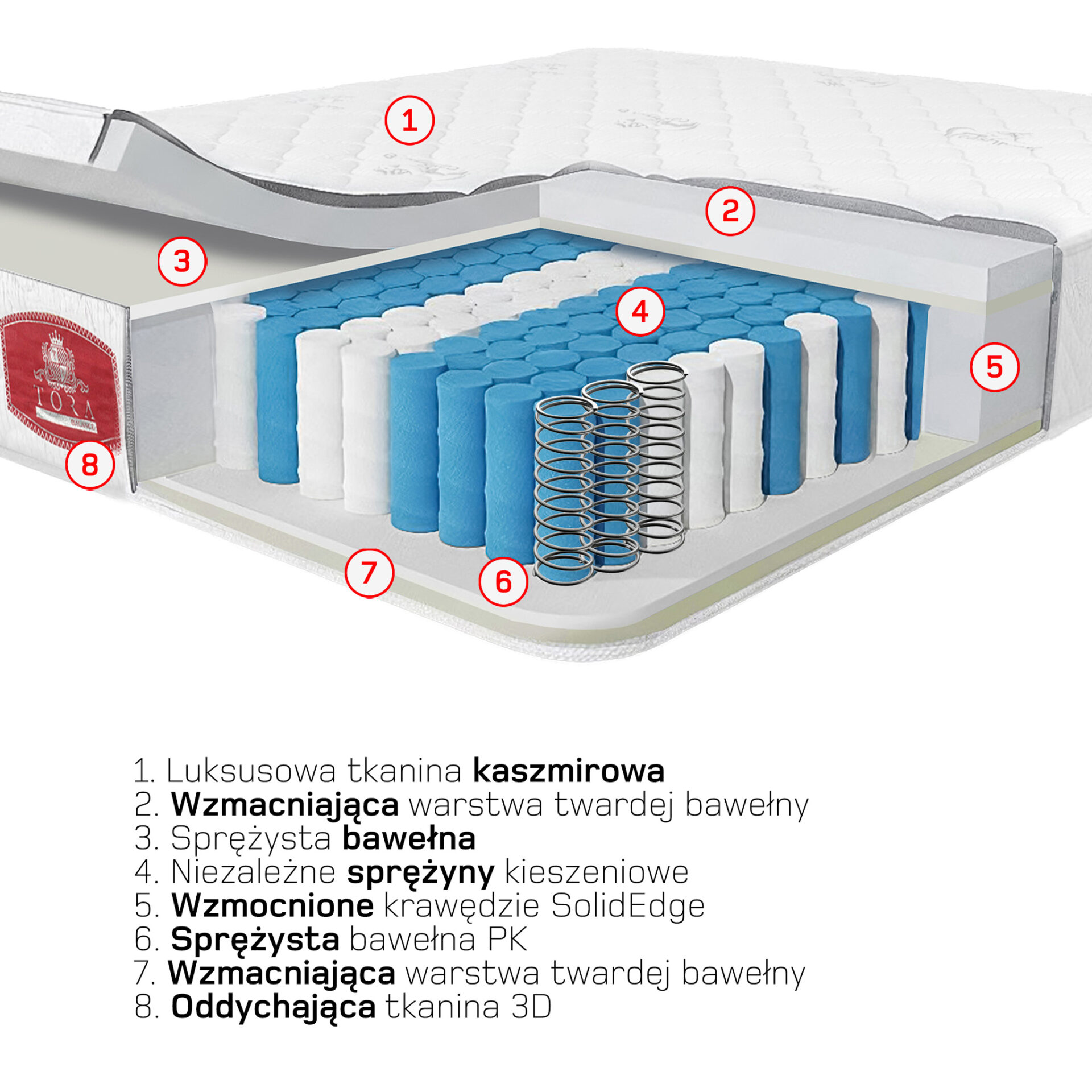 Materace TORA zostały zaprojektowane z myślą o długotrwałym komforcie, higienie i niezawodności. Aby zachowały swoje właściwości przez wiele lat, warto stosować się do kilku prostych zasad pielęgnacji: