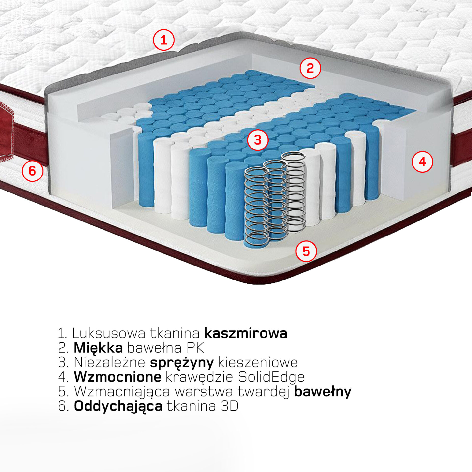 - Sprężyny: Niezależne sprężyny kieszeniowe nowej generacji Ø1,8mm
